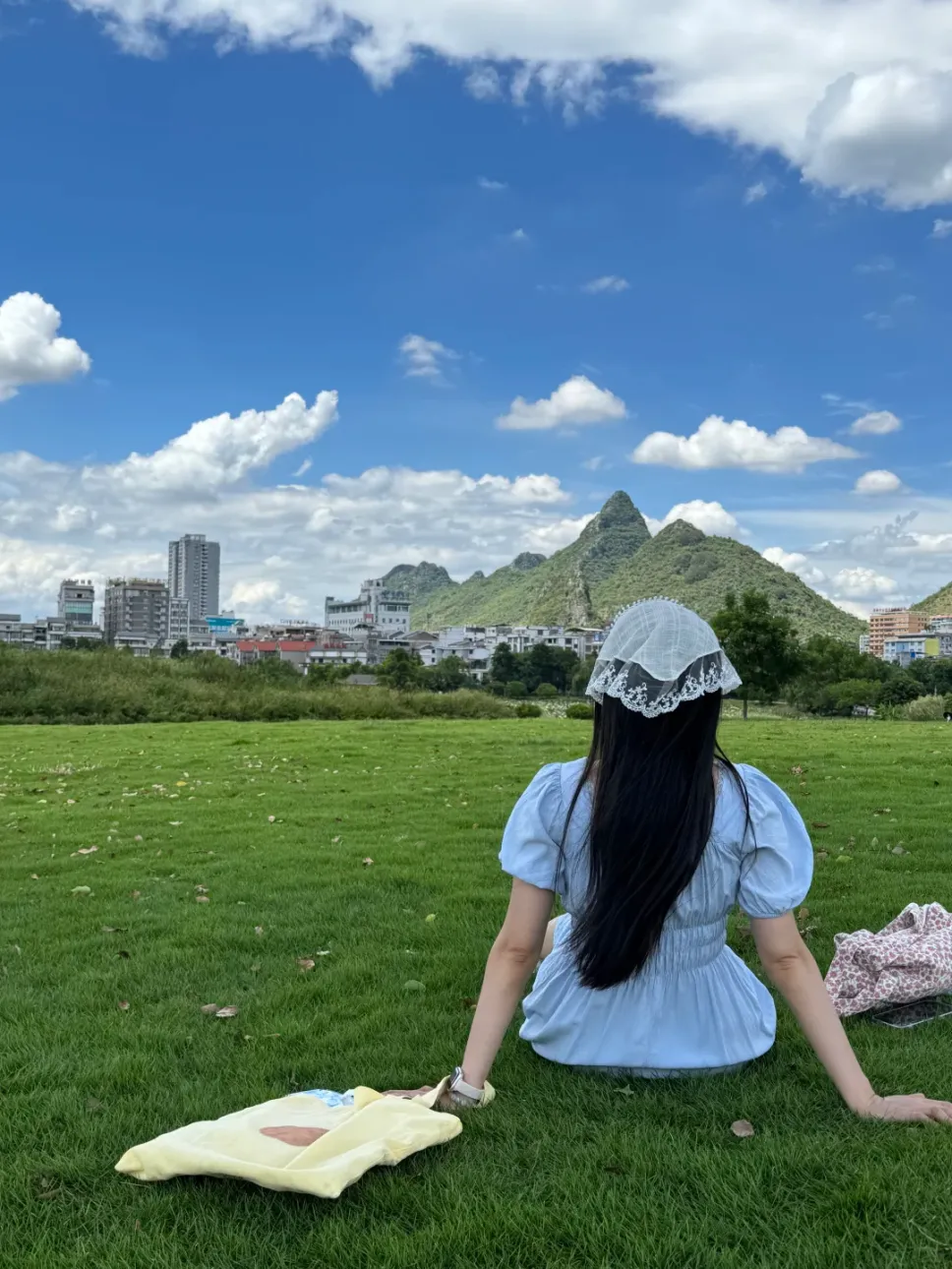 而头巾自带的自然感与山水田园感,搭配浅色衣裙,完全就是拍出“妹感”的最强武器