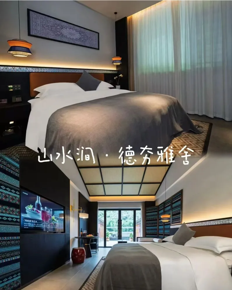 藏在德夯苗寨的诗意栖居,每间房型🏡各有风情,推窗见青山与溪流,门前的青石板路直通苗寨✨
