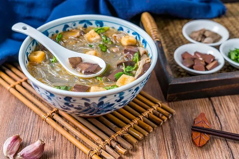 • 鸭血粉丝汤:小潘记、金源鸭血粉丝汤,汤头鲜美、料多量足,加一份锅巴口感翻倍