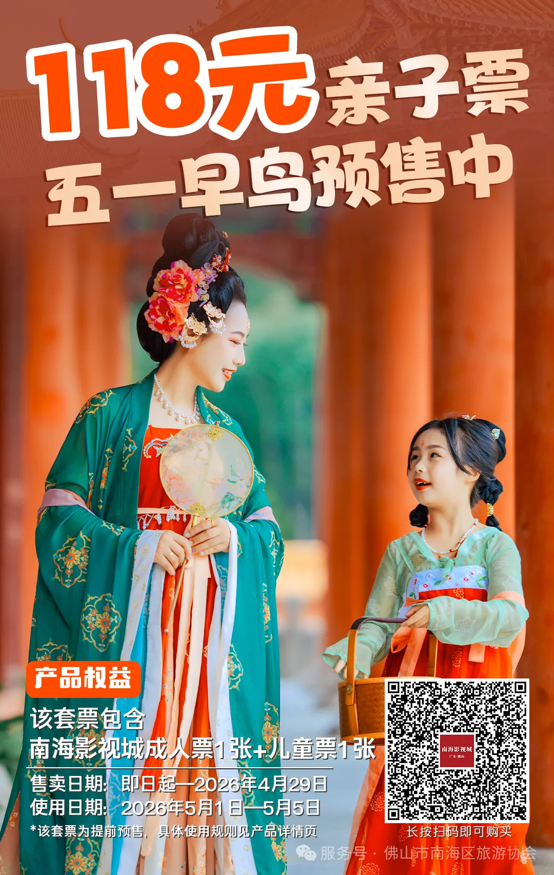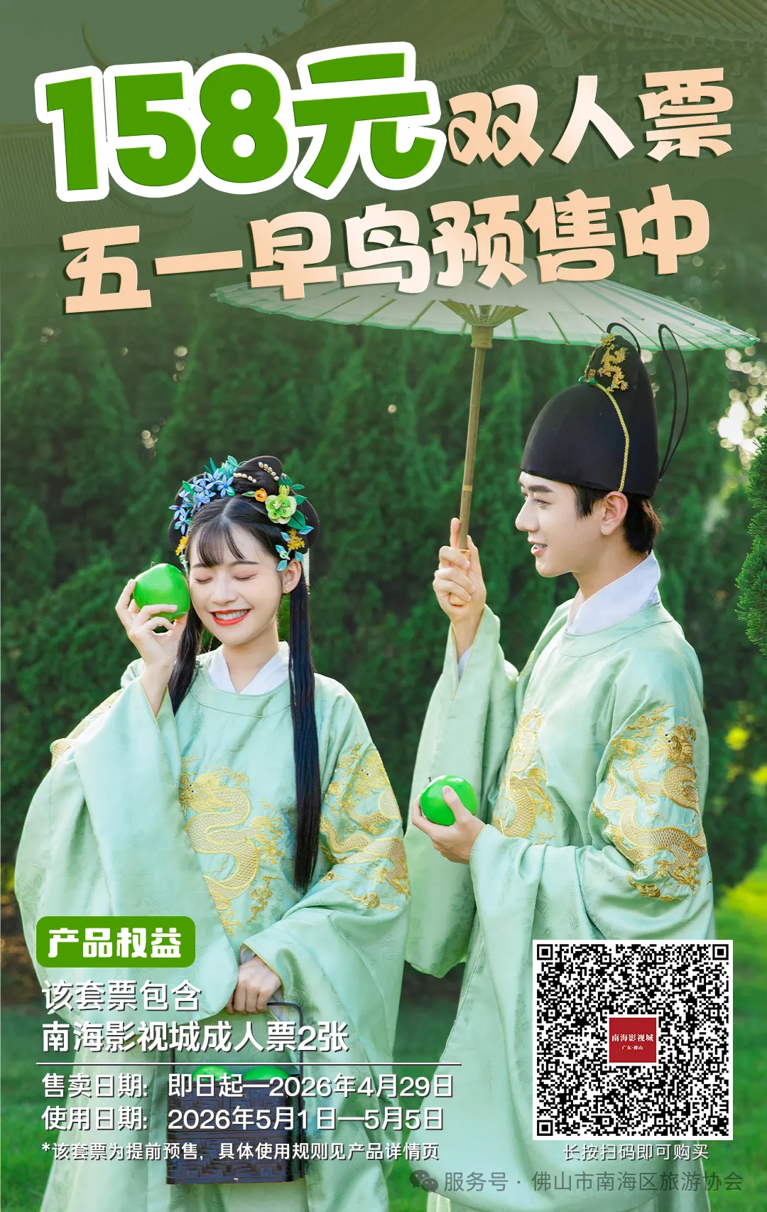 没赶上专属免费福利也没关系!南海影视城五一早鸟票重磅上线,所有游客均可购买,性价比拉满!