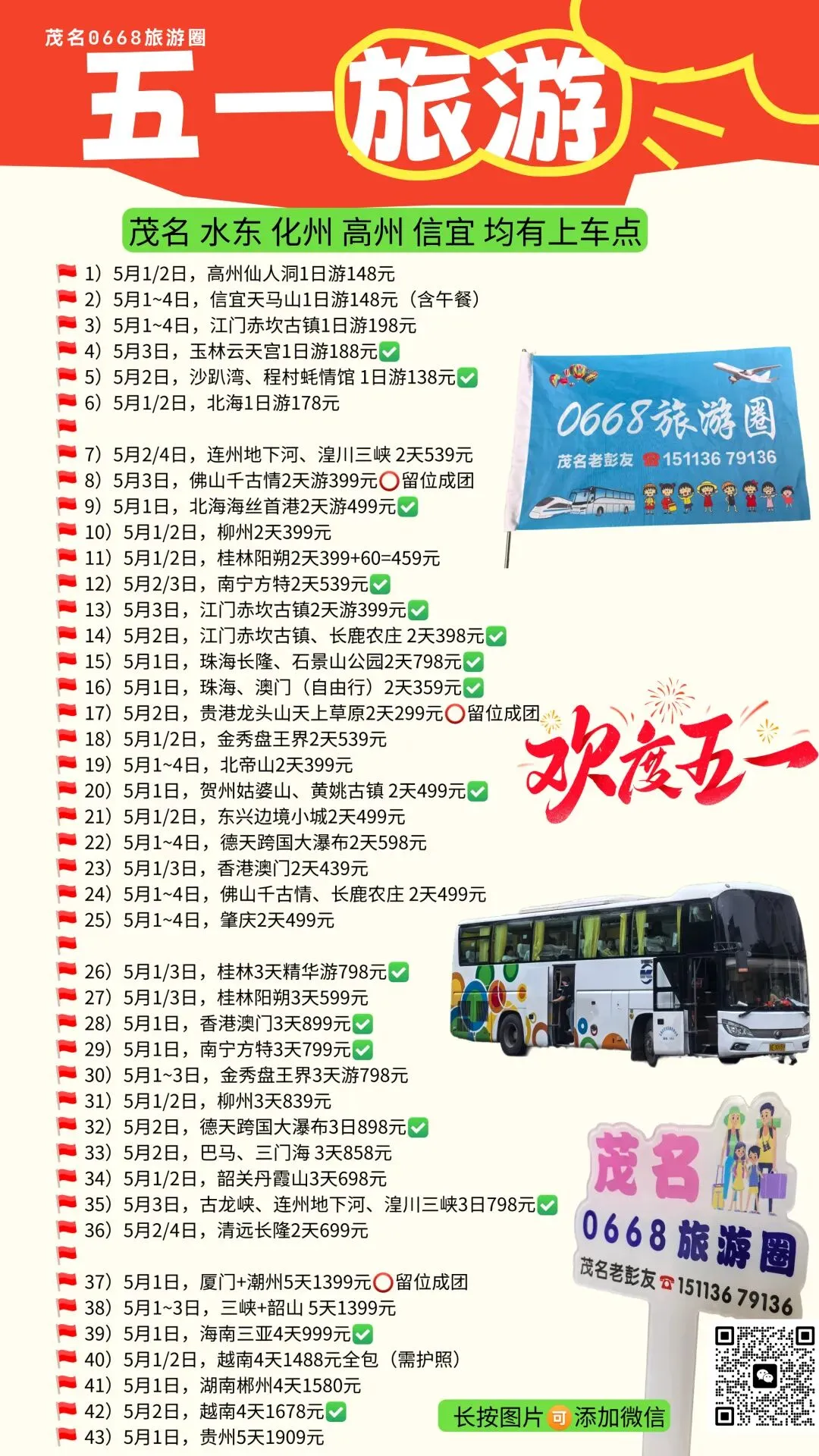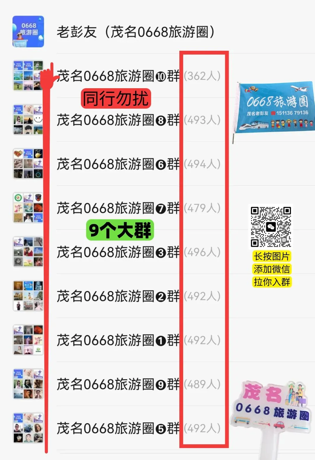 茂名旅游团报名入口:茂名老彭友电话☎️/微信 15113679136