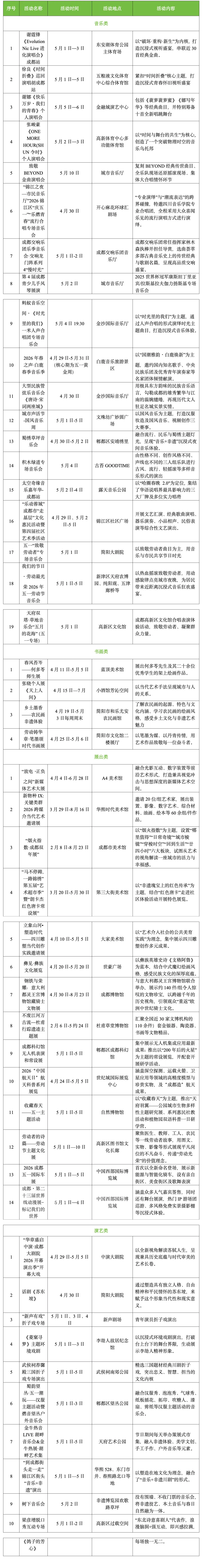 推荐理由:涵盖浪漫社交、市井生活、文化交流、艺术体验与美食休闲等多元场景,既展现了成都诗意雅致的文化底蕴,又饱含鲜活热闹的市井烟火,既能满足市民游客休闲打卡、交流互动的需求,也能深度体验非遗、汉服、书画等特色文化,全方位呈现成都包容多元、安逸舒适的城市魅力。