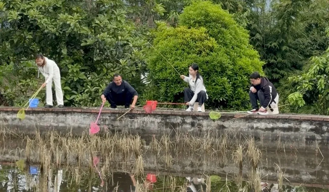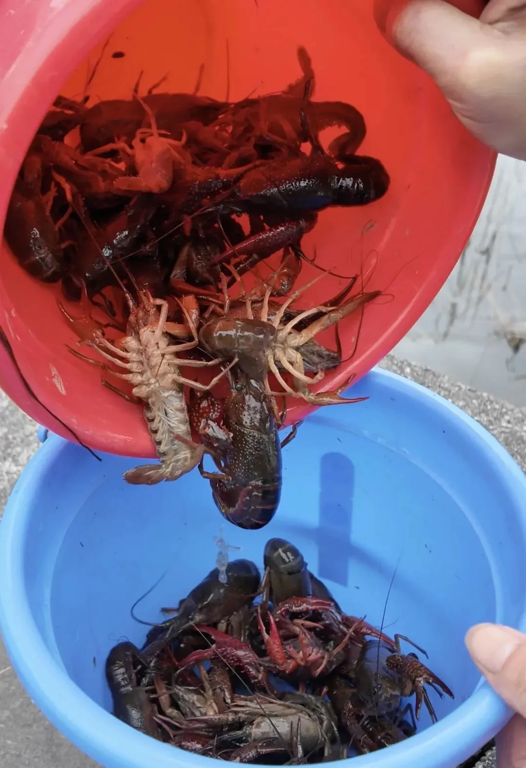 旁边就是龙虾塘,挽起裤脚,拿起钓竿,水花溅起欢笑声。