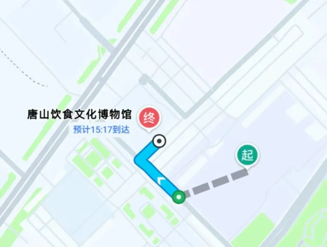 从唐山大剧院出发,沿丹凤路向西行驶,随后转入学院南路,向南直行;