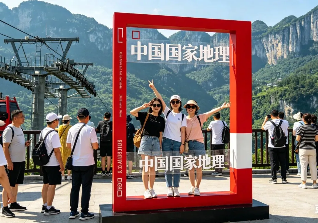 打卡《中国国家地理》官方红框地标,漫步沐抚飞瀑、索道上站、迎客松、一炷香、大地山川五大王牌观景台,定格山野大片。