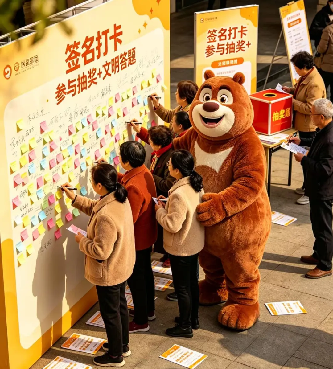 1. 文明承诺签名墙:签名打卡即可参与抽奖+文明答题,每一份承诺都有惊喜回应;