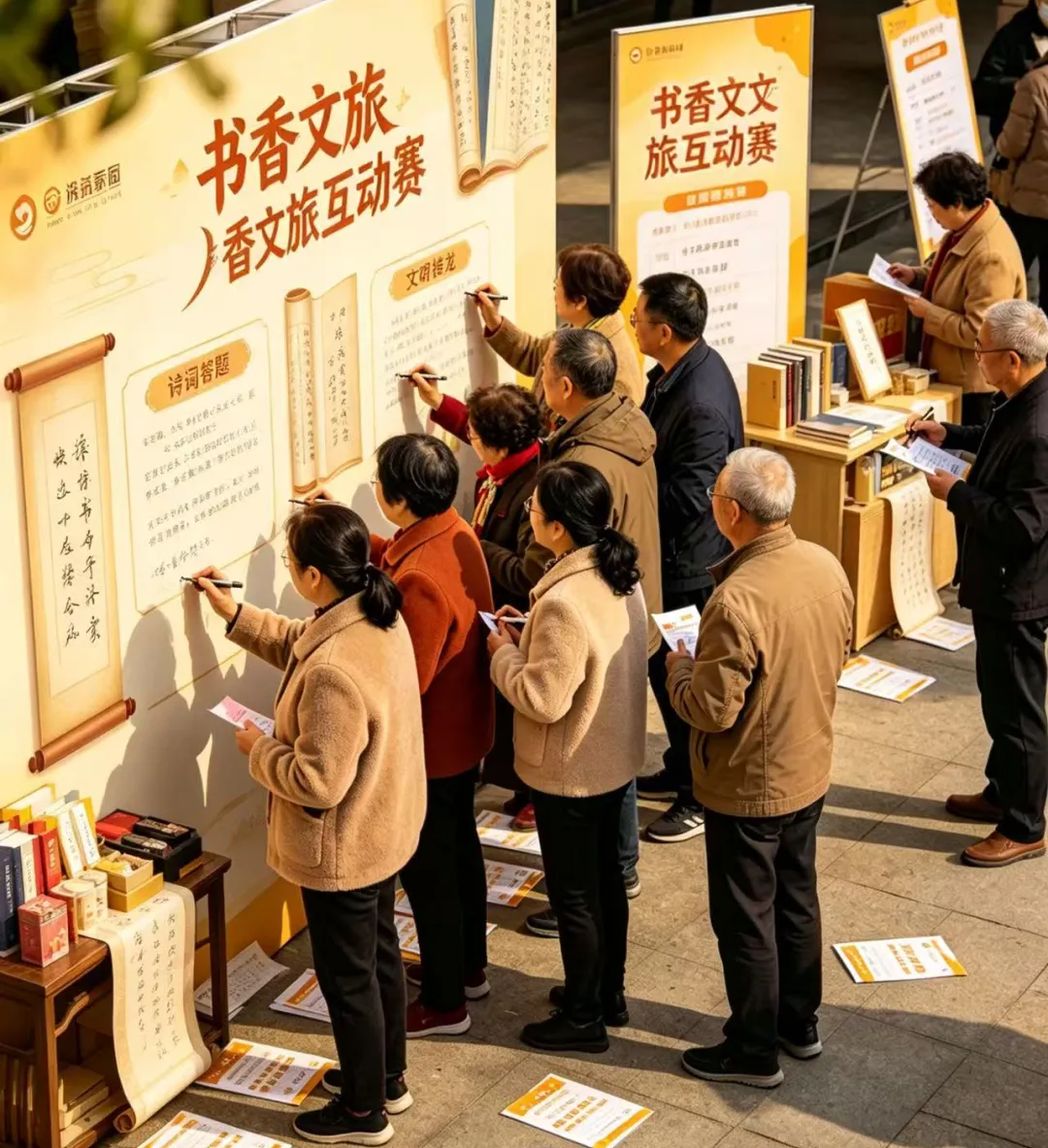 3. 书香文旅互动赛:读书分享/诗词接龙、文明答题、文化科普答题三选一,完成挑战即获奖品;