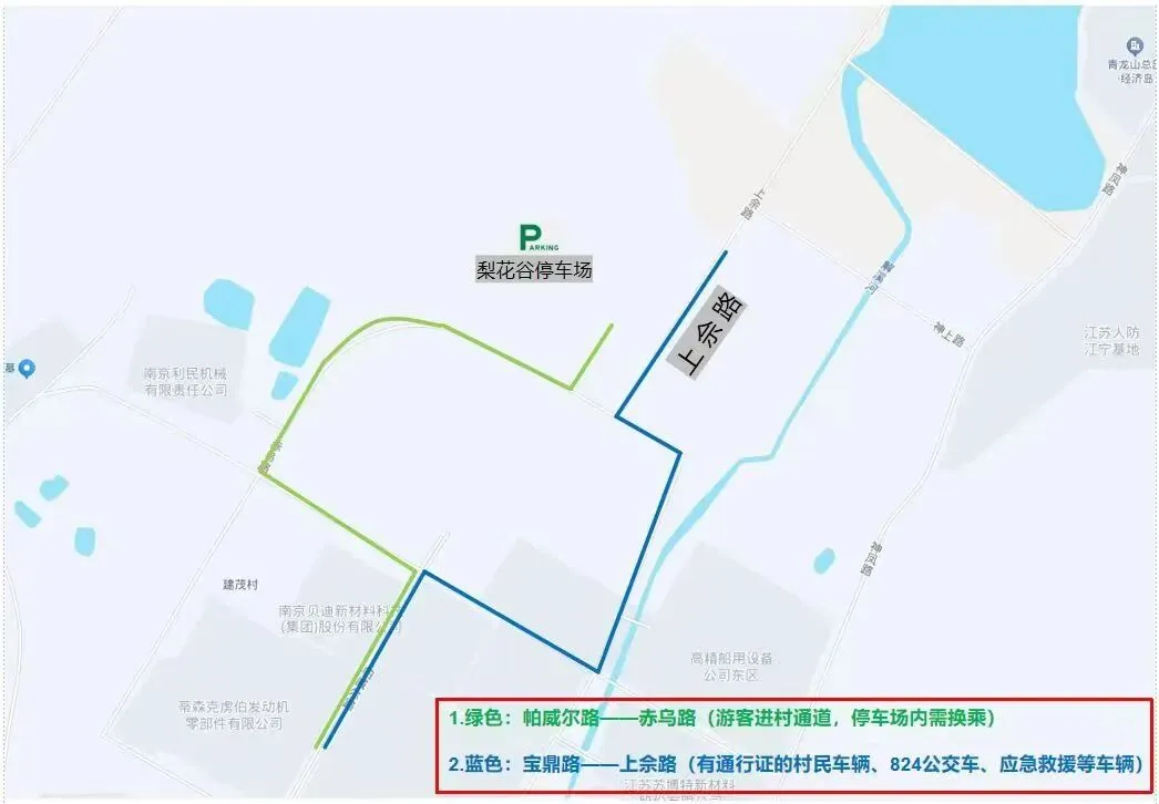 为保障大家的出行安全,“五一”如遇到车流高峰期,交警中队根据佘村村内车流量的情况实行临时交通管控,进村游客车辆可从【帕威尔路--赤乌路】驶入梨花谷停车场内转乘接驳车进村,现场有路牌和交警引导。