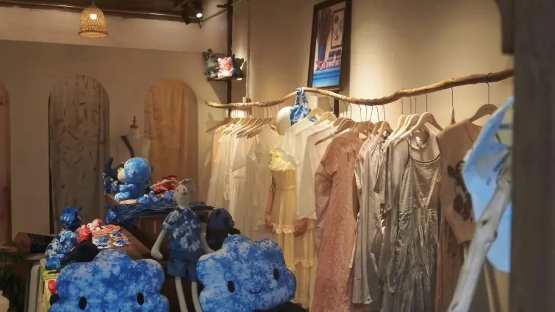 在这可以体验扎染、蜡染、拓染、植物热转印,制作出独一无二的服饰、包包、玩偶等。非遗传承和现代审美结合,配合环保以及健康理念,所有颜料都是用植物经过发酵或者熬煮出来所得。