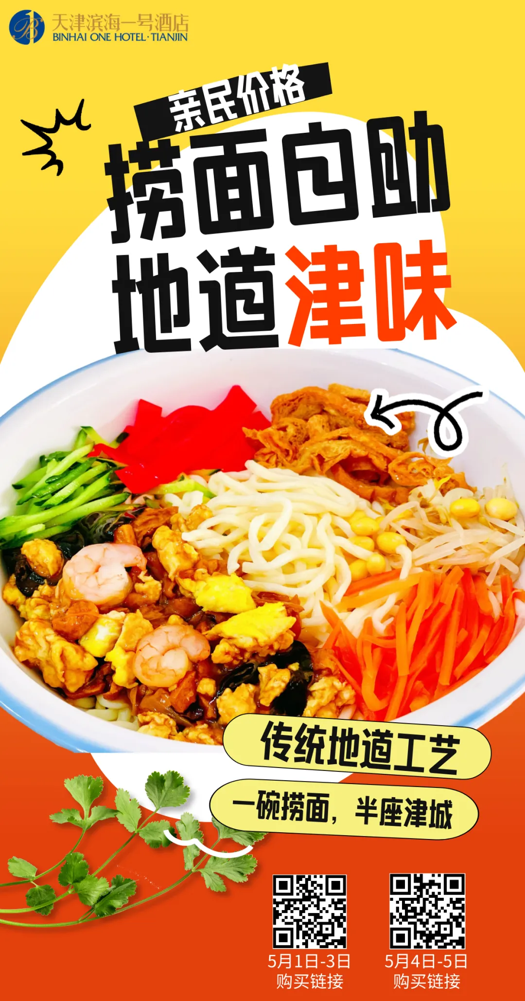 5月1日—5日,限定自助捞面倾情供应,筋道面条搭配多样浇头,暖心又暖胃