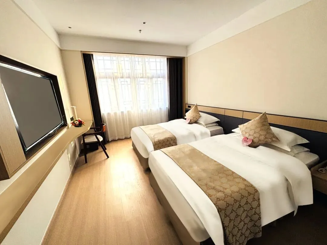 一号悦居位于酒店内西北侧,占地2094平方米,总建筑面积5737平方米。拥有112间客房,房间面积25-50平方米。
