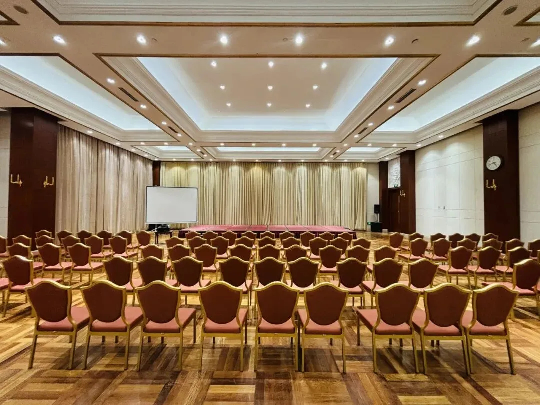 会议中心拥有近1000平米的无柱会议厅(滨海厅)、专业的影院级报告厅、多功能数码视听室以及7个大、中、小型会议室和两个贵宾接待室、可同时容纳1300人举行各类高端会议;