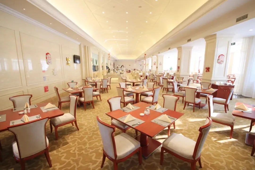餐饮中心拥有1000平方米的宴会厅(满庭芳)及各式豪华包间,各类特色菜肴,令您在一处即可享受各地珍馐美馔;
