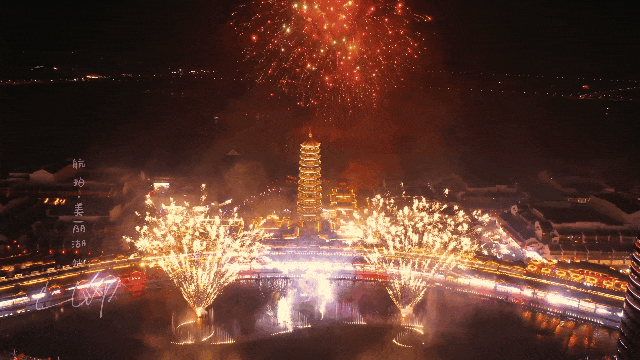 太湖演艺城临水而建,古色古香的建筑群既有江南水乡的灵气,又有气势恢宏的壮美,这里融合了仿古建筑、非遗展示、演艺、酒吧、美食、购物、儒释道、大型水上实景演出、音乐广场、客栈、桃花岛等各种元素,古今交织,浑然一体。