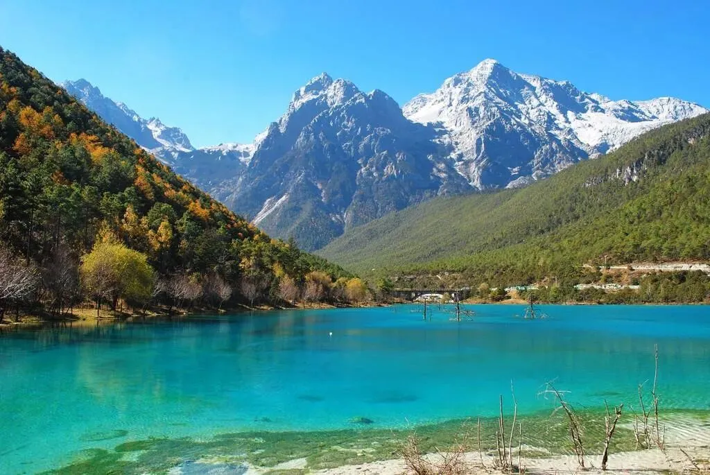 4⃣蓝月谷(同雪山):水是绿色的,自带滤镜的美景
