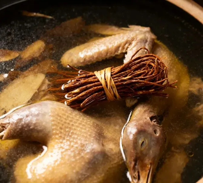 锦屏村是中国贡眉之乡核心产区,被誉为"高山野白第一村"。这里云雾缭绕、土壤富硒,孕育出的锦屏野小白,芽叶连枝、毫香清鲜,是贡眉白茶中的珍品。翡翠山居专业大厨将这片山野的灵韵融入灶台,以茶入馔,独创白茶宴。
