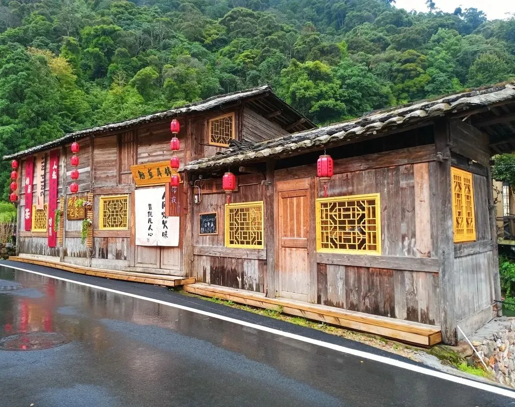 民宿坐落溪边,古朴雅致。有单间5个,有厨房、餐厅、品茶室。