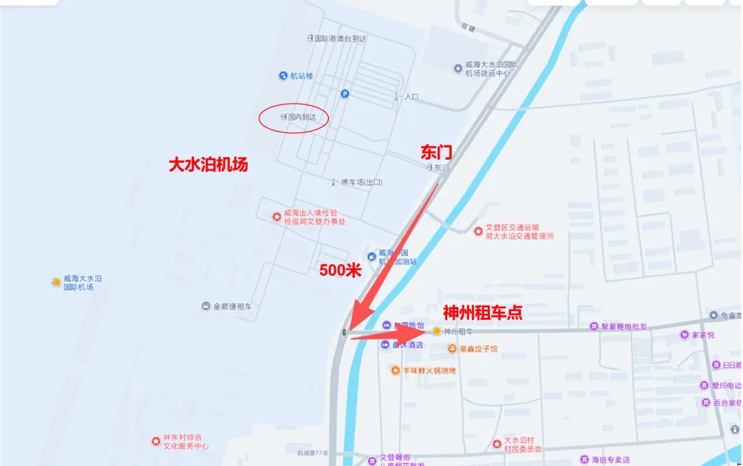 机场名为威海大水泊国际机场。威海大水泊国际机场