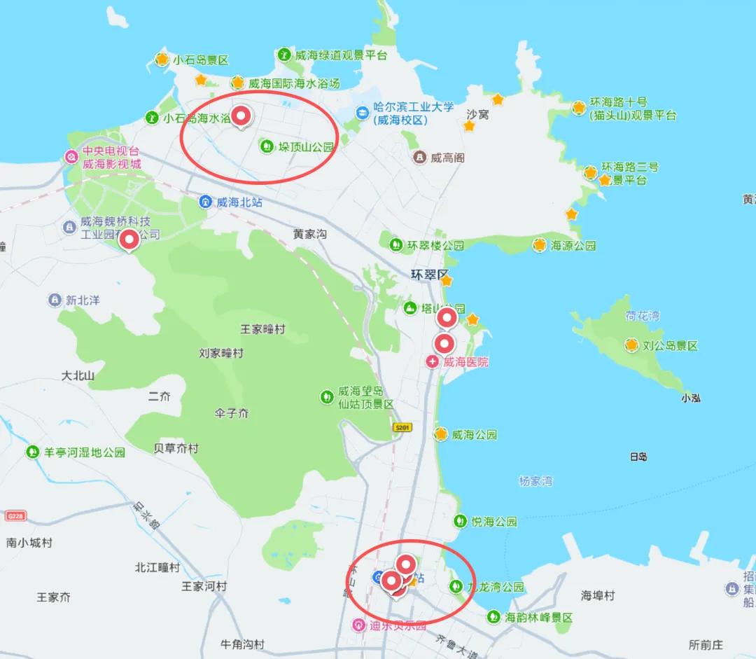 住宿我推荐大家住在环翠区,优先威海站或者威海北站附近,吃住行便利。