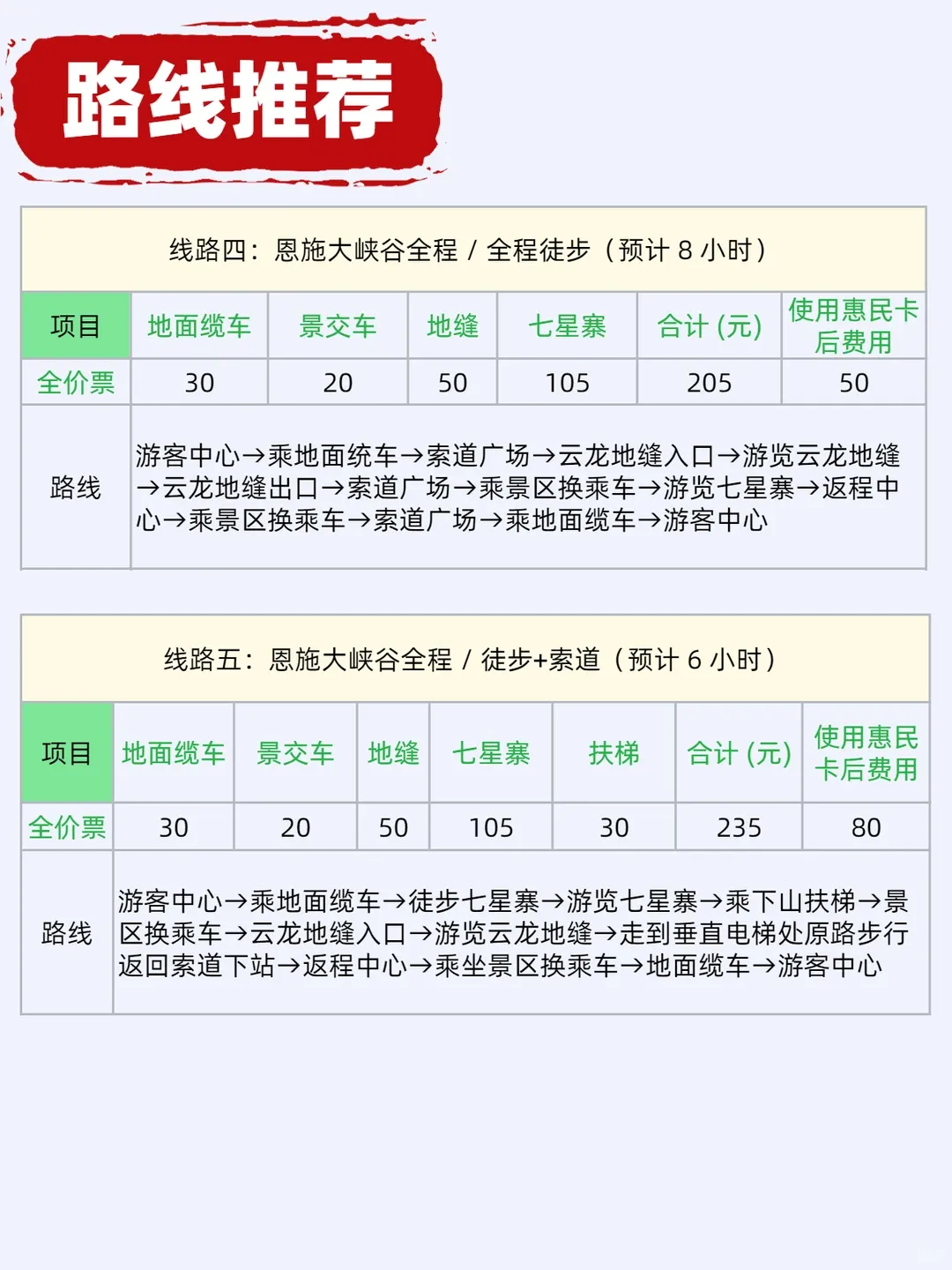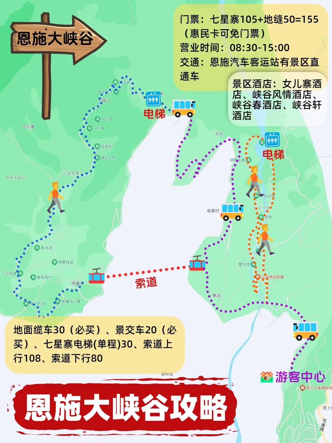 首先要弄清楚的是恩施大峡谷分为两个部分云龙地缝和七星寨。这两个地方可以上午游玩七星寨,下午游玩云龙地缝,也可以只选择一天只玩其中的一个。