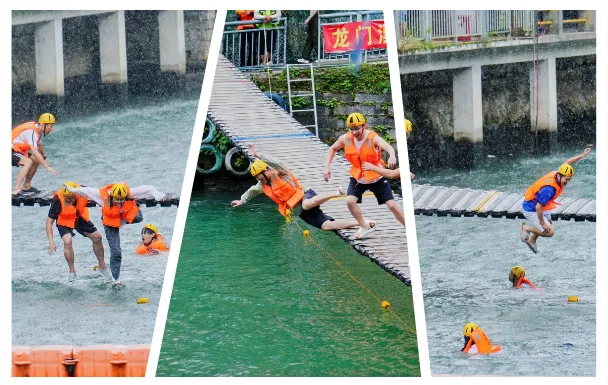 网红桥和浮桥特工安排在漂流前体验——网红桥有工作人员统一组织摇桥PK,大家一起配合摇摆,欢乐又刺激;浮桥特工则考验平衡感,非常适合结伴挑战