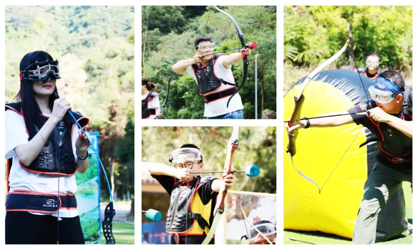 戴上护目镜,握起轻量化弓,箭尖配有安全海绵头,新手也能快速上手。在掩体间穿梭闪避,与队友配合进攻防守。更刺激的是——射中靶心即可复活队友!一场体力与策略的较量,让你彻底释放压力,玩得过瘾!