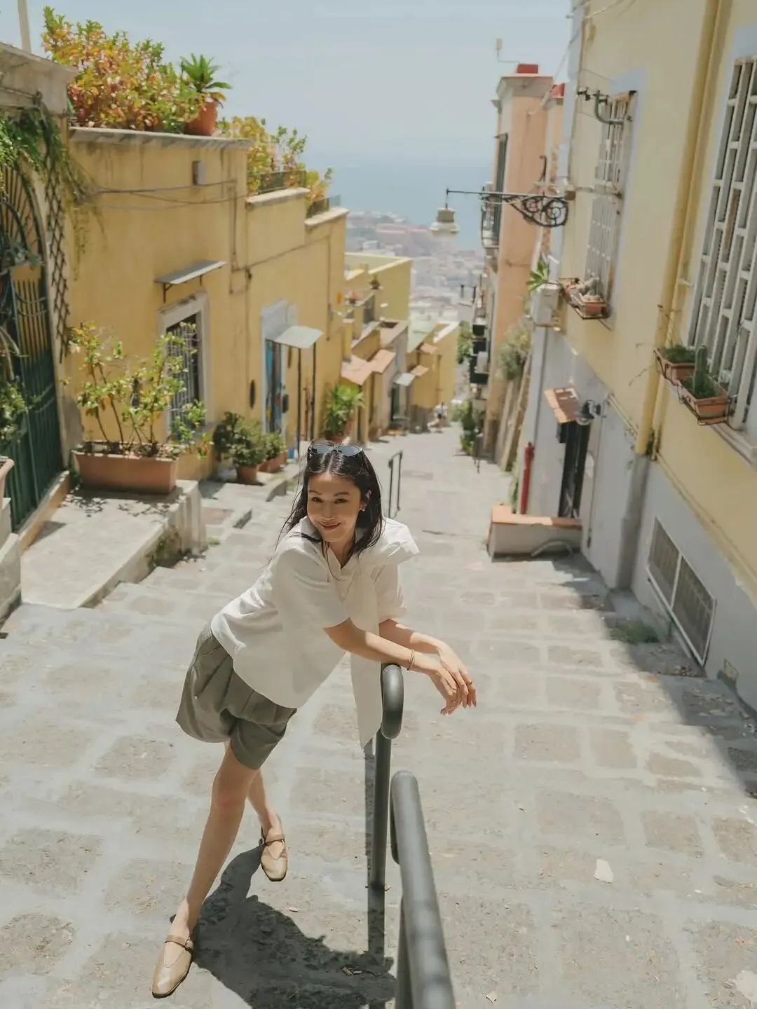 Jenny给我的一个拍照启发是借用城市的阶梯,来增加空间感,来呈现更多城市的景色,旅行不只是要拍自己,也是想要记录一下城市风光,不同的城市呈现的天际线也不一样。