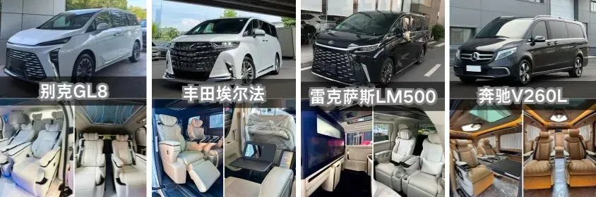 丰田埃尔法(豪华舒适)、奔驰v级(商务典范)、新款别克gl8(性价比之选)、雷克萨凘lm(尊贵体验)、理想mega(新能源能智座驾)—适合髙端接待、家庭出游。
