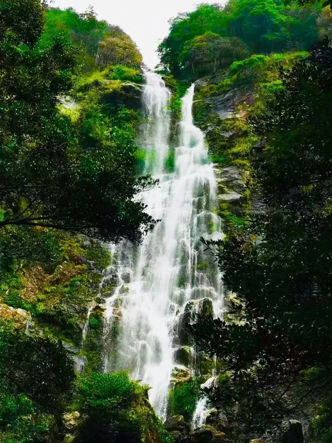 江山镇科山村龙井瀑布深藏在绿竹滴翠、森林葱郁的深山峡谷之中。溪水从龙井漫出,始成一级宽帘小瀑,然后汇入悬崖边一圆形大石井。从石井再分为二股白练,在80余米高的山崖上凌空直泻,形成宽15米的瀑布。