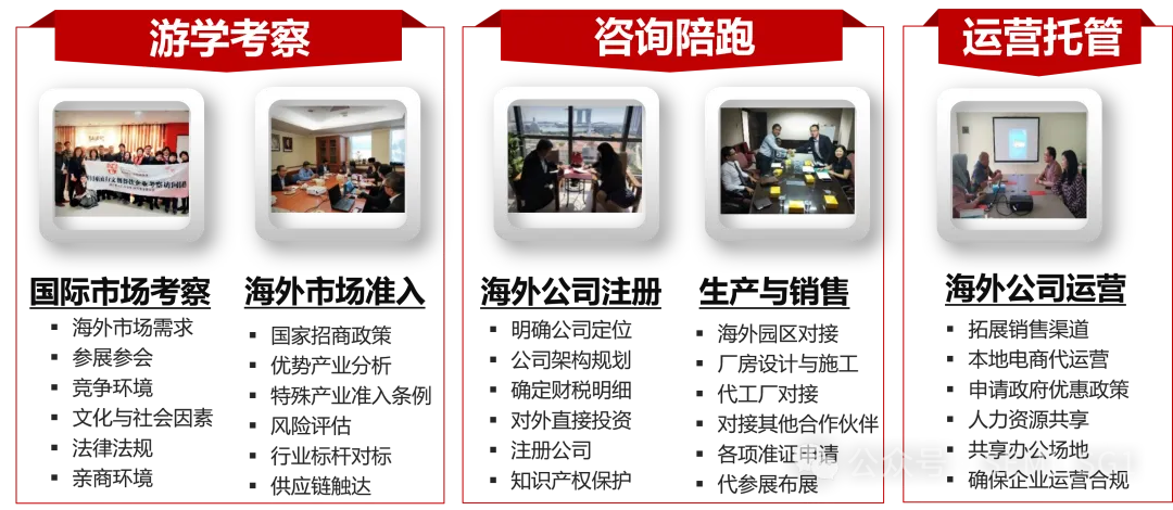 依托学院的专业背景及丰富的资源积累,提供全面的商业咨询服务,助力企业国际化发展。提供:企业国际化发展规划、海外项目实施与管理解决方案、海外公司注册与托管服务、国际市场拓展与合作、跨文化管理与培训。