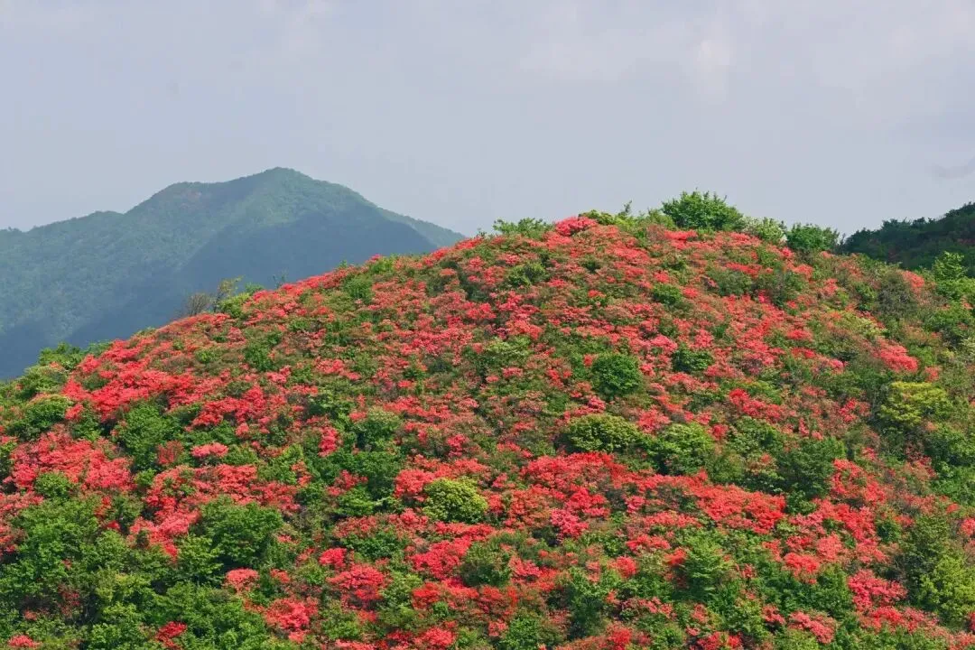 5月五溪山杜鹃会开。山上红一片。