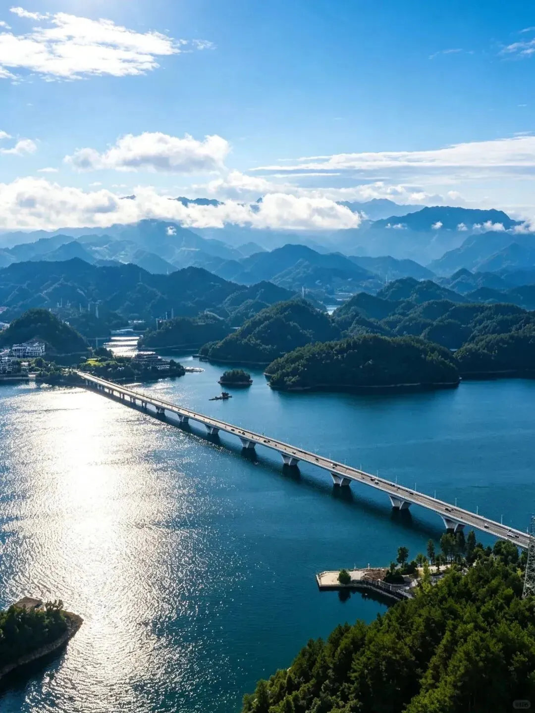 桥一座接一座。岛屿散在水面。