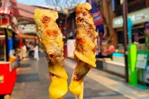 1. 烤乳扇:牛奶制品,烤后卷起,涂抹玫瑰糖,奶香十足。