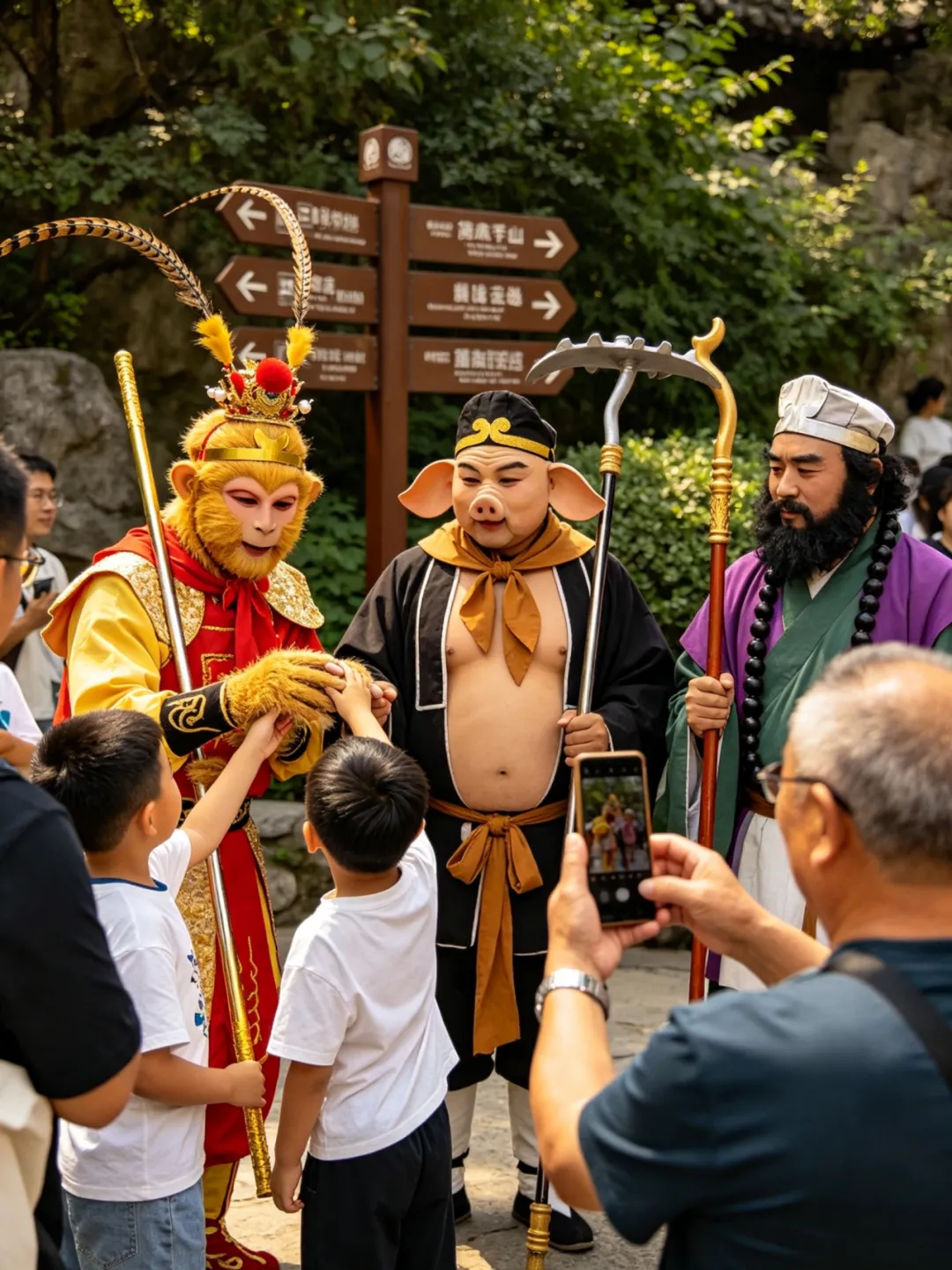 建议下午去。五一推了“抱犊秘境”剧本杀,领银两和NPC玩投壶射箭;16:00后川剧变脸、喷火、小丑秀轮番上阵。 - 王母山: