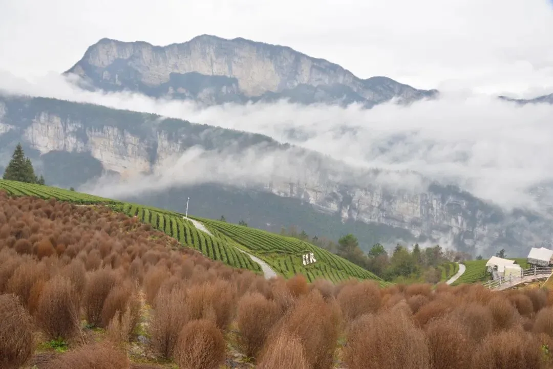 站在观景台眺望,远处的大峡谷绝壁在翻涌的云雾里若隐若现,底下是一片绿油油、层层叠叠的茶园。云雾遮掩的那一刻,像极了水墨画里的山影。后来我也去了七星寨,对比后还是觉得这里的风光更胜一筹,关键还完全免费。