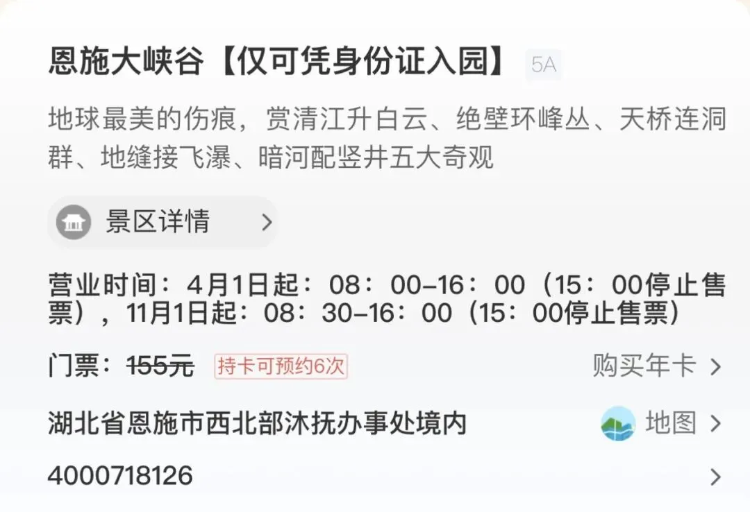 1、到恩施旅行,建议买湖北惠民卡。除屏山大峡谷外,大多数景点都包含在年卡里,可省不少钱。