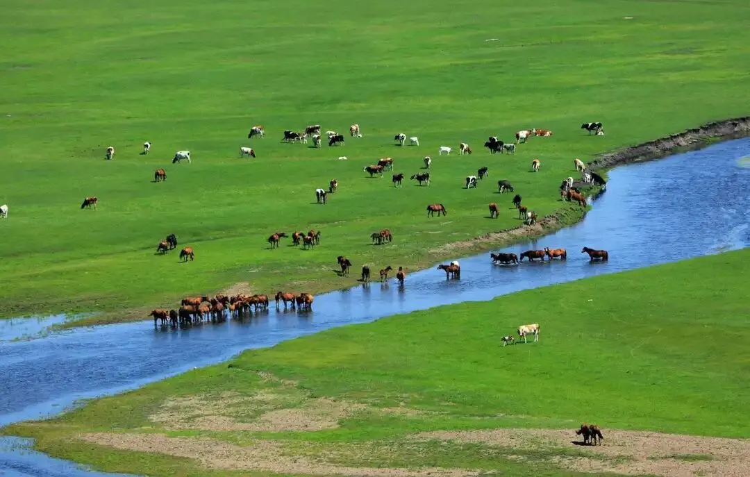 3、陈巴尔虎旗(莫日格勒河景观带):陈巴尔虎旗是呼伦贝尔大草原的核心区域,著名的莫日格勒河(“天下第一曲水”)流经此地,景色壮美。