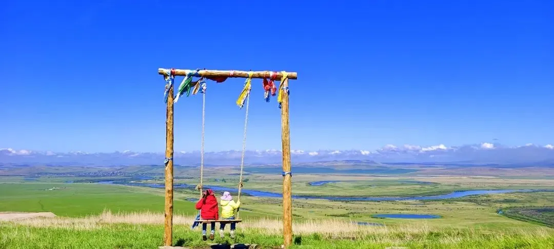 网红秋千:内蒙古最高的网红秋千,荡在国界线上,脚下是蜿蜒的额尔古纳河,对面是俄罗斯,惊险又壮观。