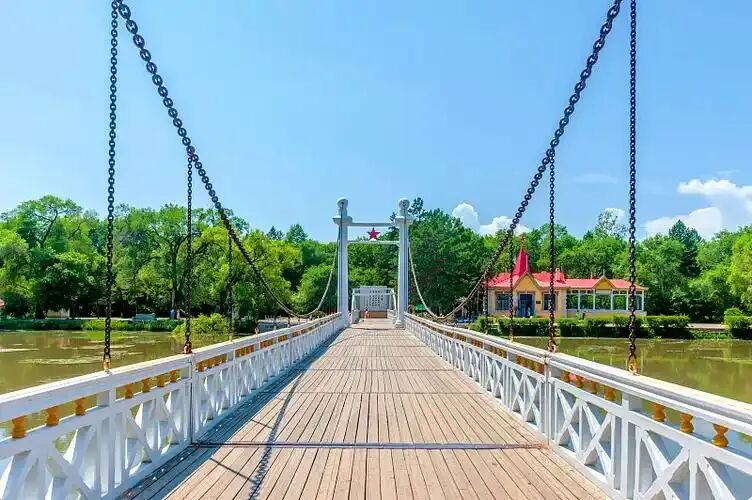 文化休闲广场:广场以白色大理石和暗红色彩砖铺设,设有健身器材、木制秋千和野生树种,是游客休闲娱乐的好去处。夏季,这里会举办“百日广场文化活动”,包括俄罗斯民族表演和电影放映。