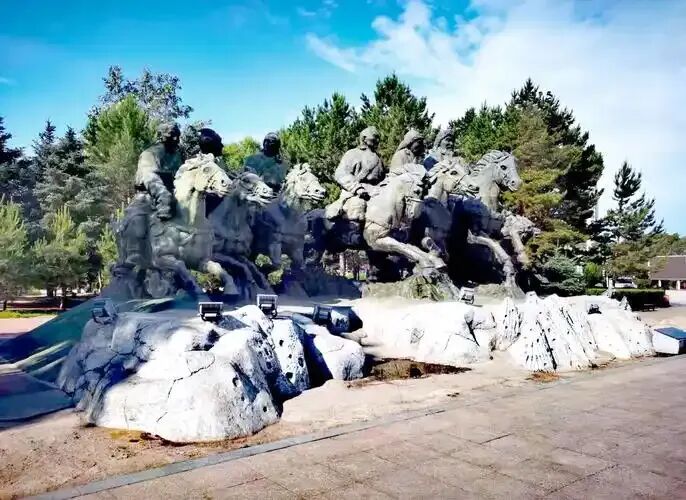 火车头广场:陈列着1940年的日制蒸汽机车头(车牌"1861"号),毛泽东主席1949年赴苏联莫斯科时曾乘坐这辆火车。