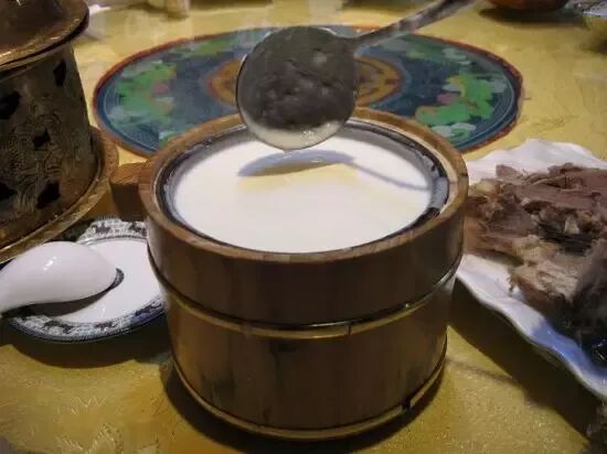 21、马奶酒:用鲜马奶经过发酵变酸酿制而成的一种酒精含量只有1.5到3度的饮料,是流行整个草原地区的传统饮料,性温,有驱寒功效。