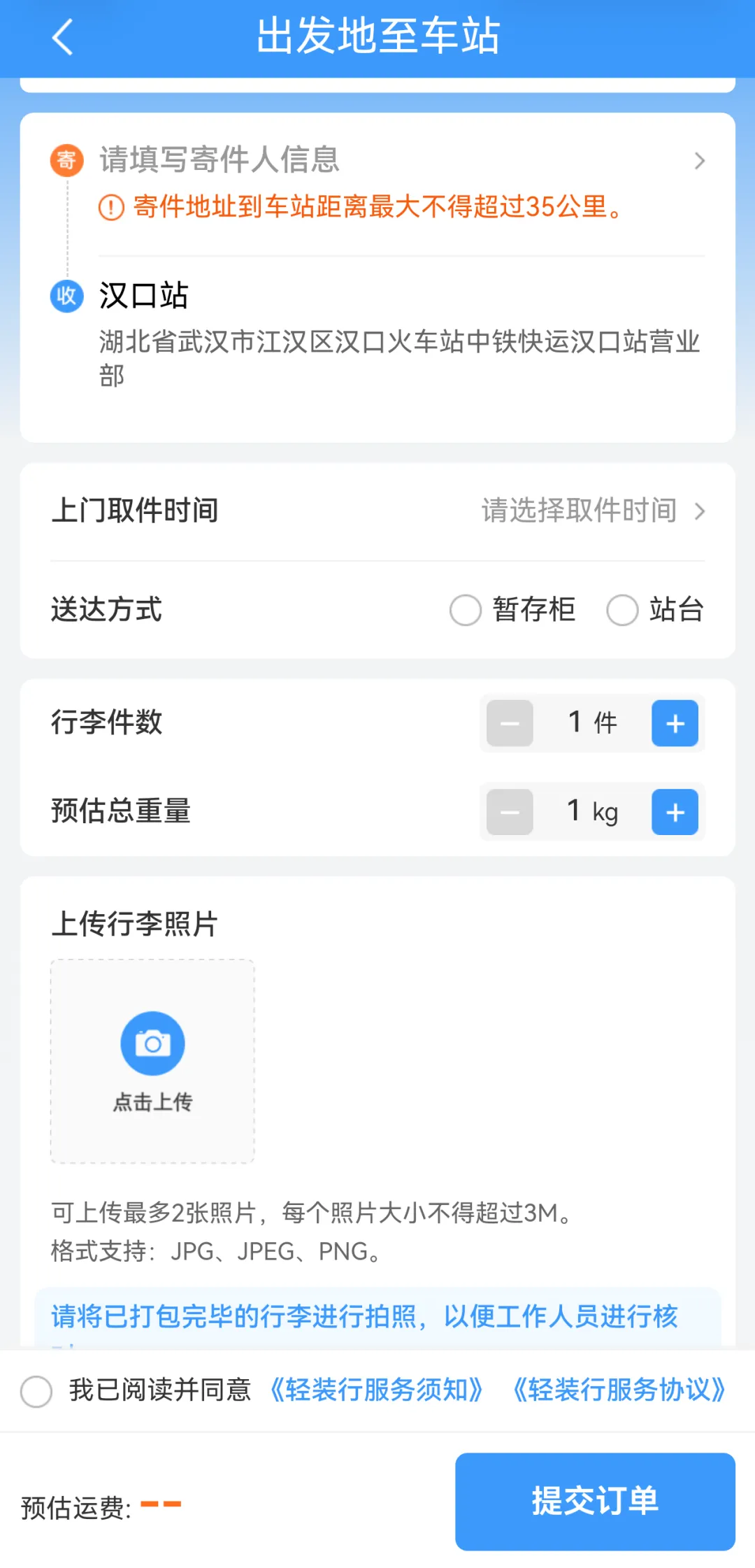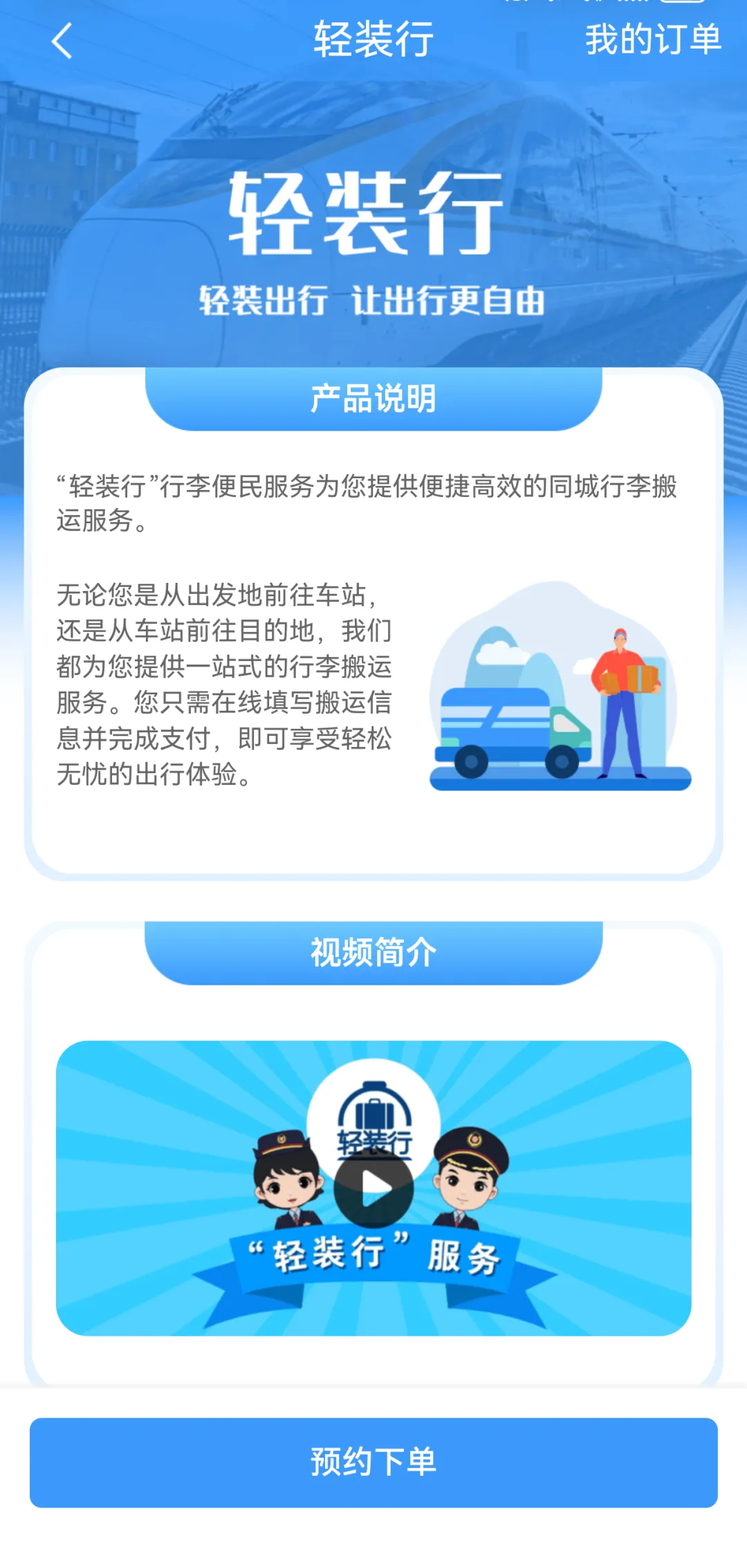 “12306”APP轻装行服务页面截图