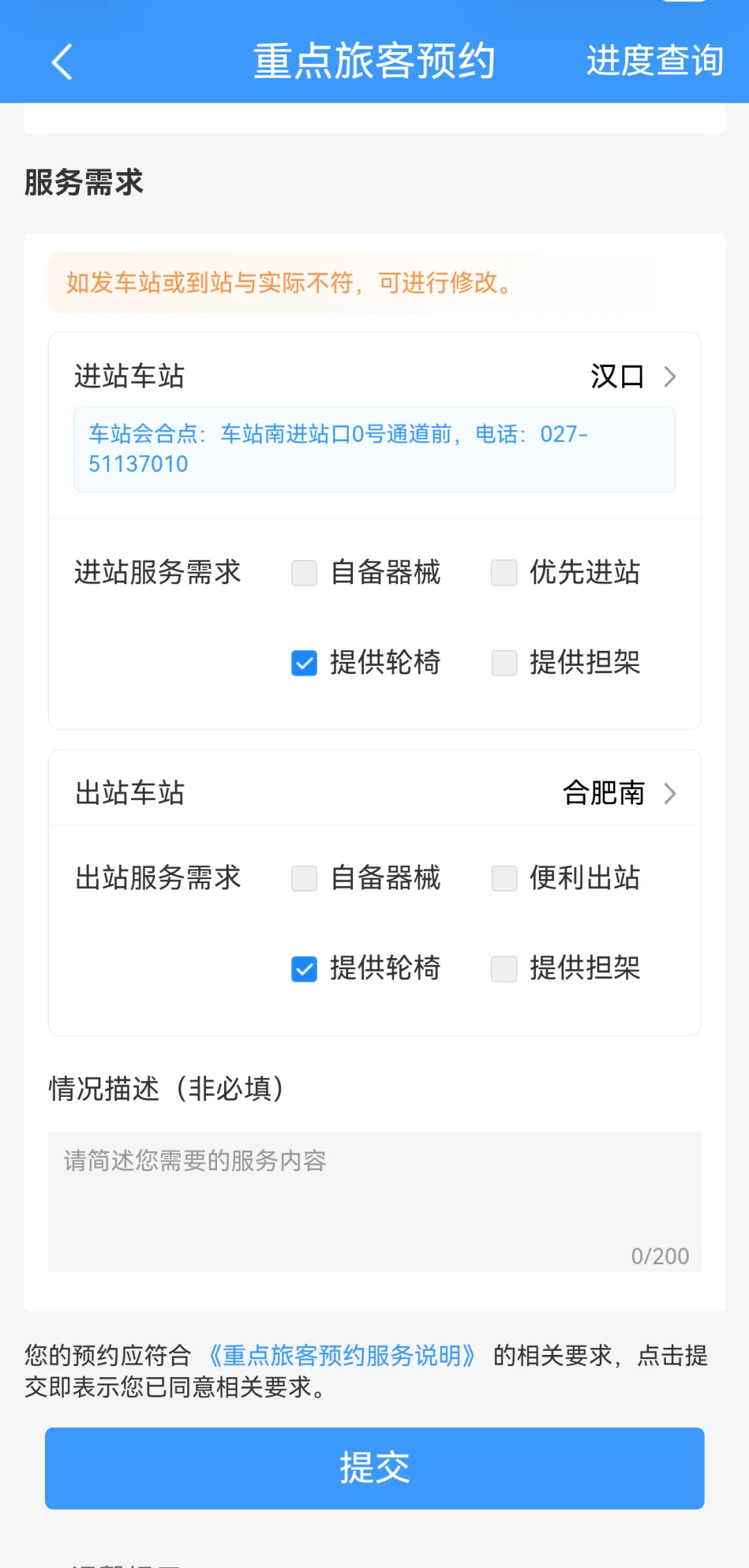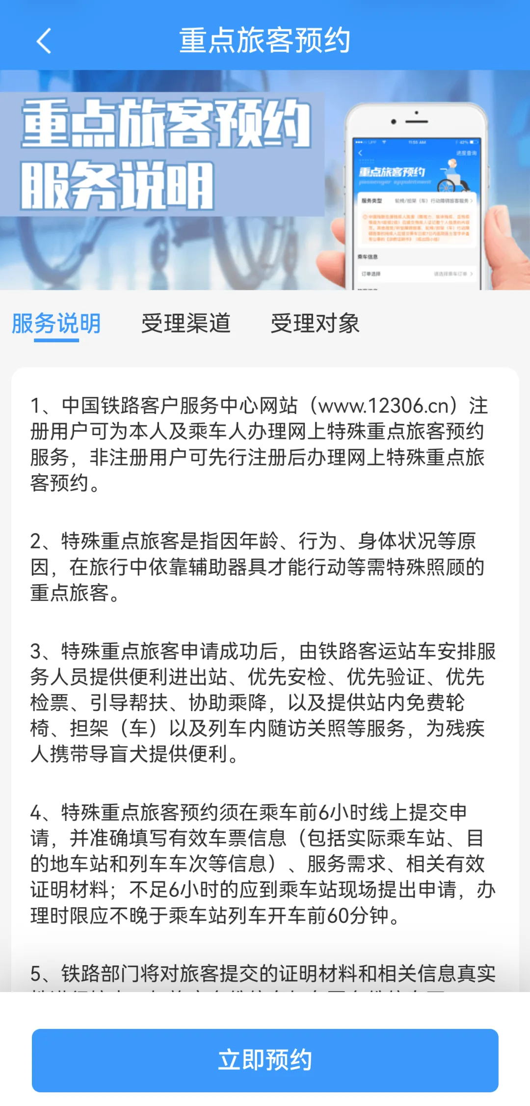 “12306”APP重点旅客预约页面截图