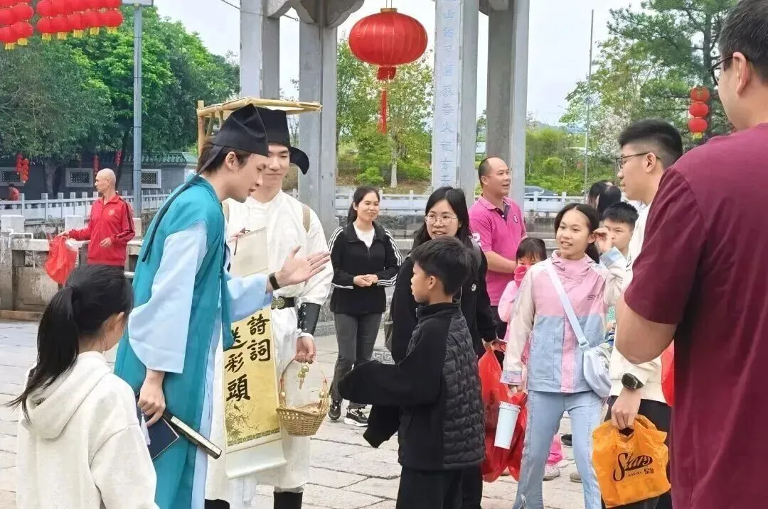😍玩法:现场一位身着汉服的“穿越NPC”随机向游客朋友发起诗词挑战,题目全是中小学必背古诗词,大人、孩子都能轻松参与~