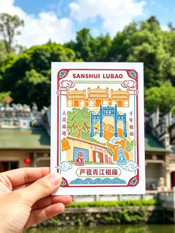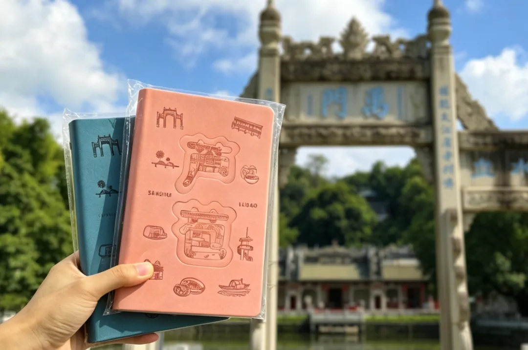 笔记本融入芦苞地标、祖庙建筑、游船等元素,内页预留集章与书写空白,你可以用它: