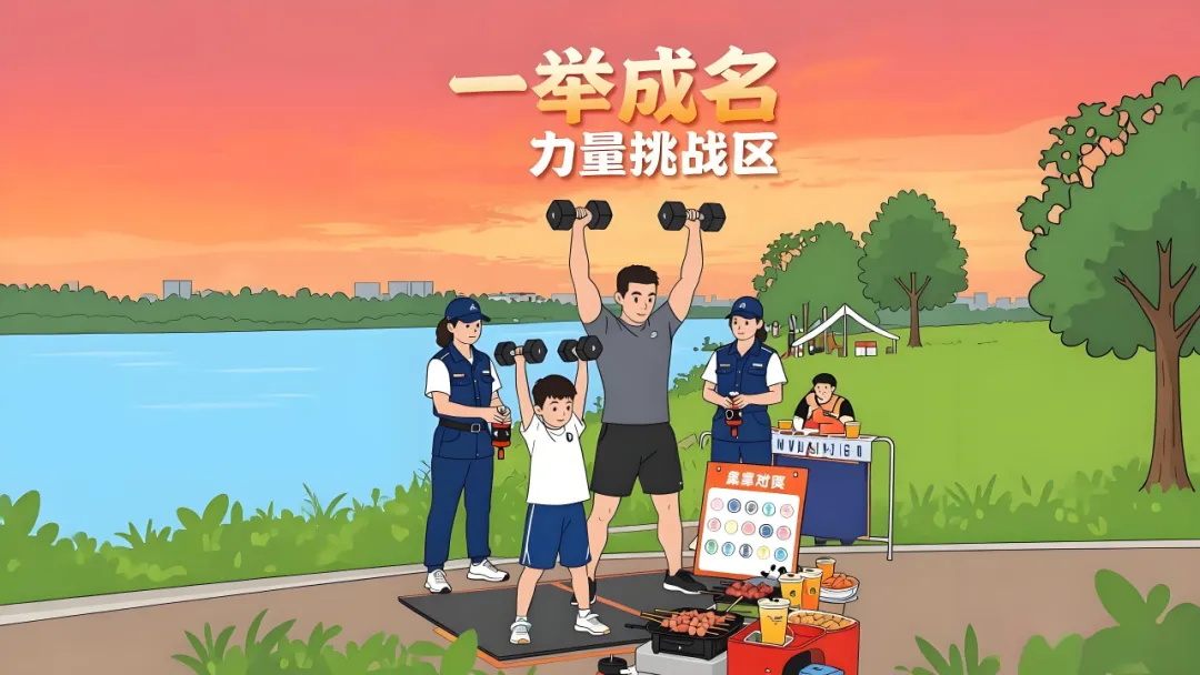 是时候展现真正的力量了!成人举起50kg哑铃,小朋友举起10kg哑铃,站立过腰坚持10秒,挑战成功即可获得印章。有专业工作人员在旁指导保护,安全问题完全不用愁!