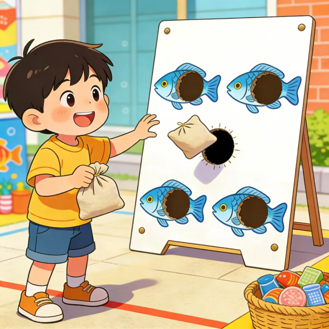 抛渔网投掷赛:瞄准大鱼洞口,一展身手