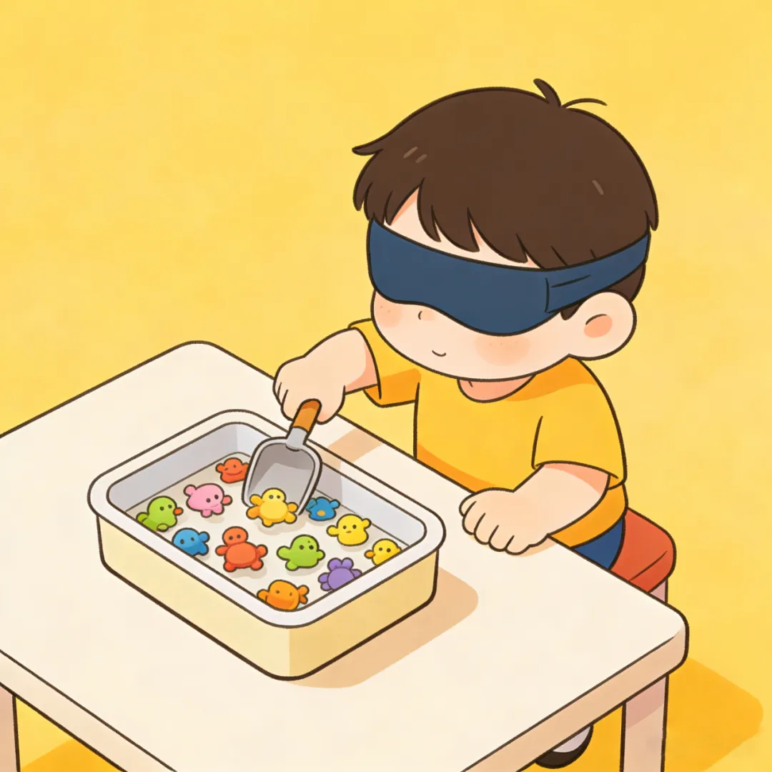蒙眼捞“蚬仔”:蒙眼铲玩具,铲到即带走