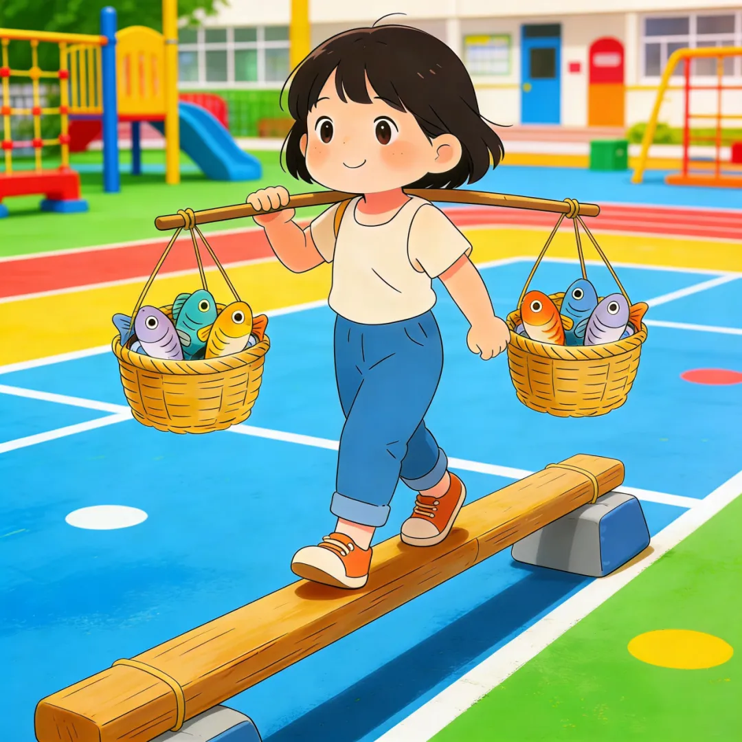 挑渔获平衡木:挑着小扁担,体验水上搬运
