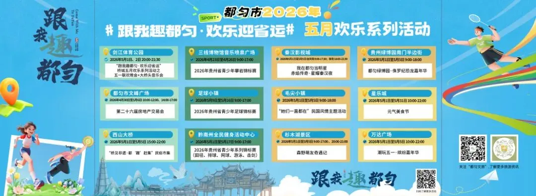 五一假期倒计时!藏在贵州南部的山水桥城都匀,早已备好满城春光与浓郁烟火,等您来赴一场惬意之约!无论是想1日速览匀城精华,3天深度感受人文自然,还是5天畅玩黔南“小天马”精品环线,这份超实用、可直接落地的旅游攻略,统统安排到位!线路串联都匀各大景区景点与特色街区,全程兼顾美景、美食、民俗与休闲,五一来都匀,照着玩就对了!带您沉浸式解锁都匀的山水、人文与活力~